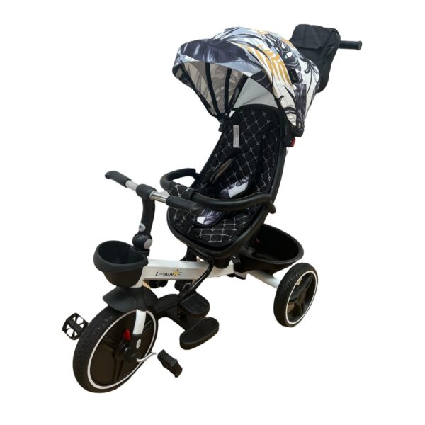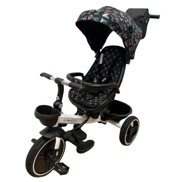 519.00 leiTricicleta cu pozitie de somn, lumini si muzica SL06 Negru AripiTricicleta pentru copii cu cosulet scoica Albastra