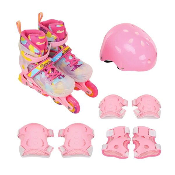 235.00 leiSet role roz pentru incepatori cu lumini si echipament de protectieSet Role Reglabile Pentru Copii Cu Pozitionarea Multipla A...