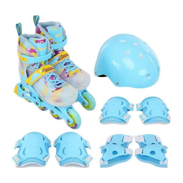 239.00 leiSet role albastre pentru incepatori cu lumini si echipament de protectieSet Role Reglabile Cu Pozitionare Multipla A Rotilor Bear...