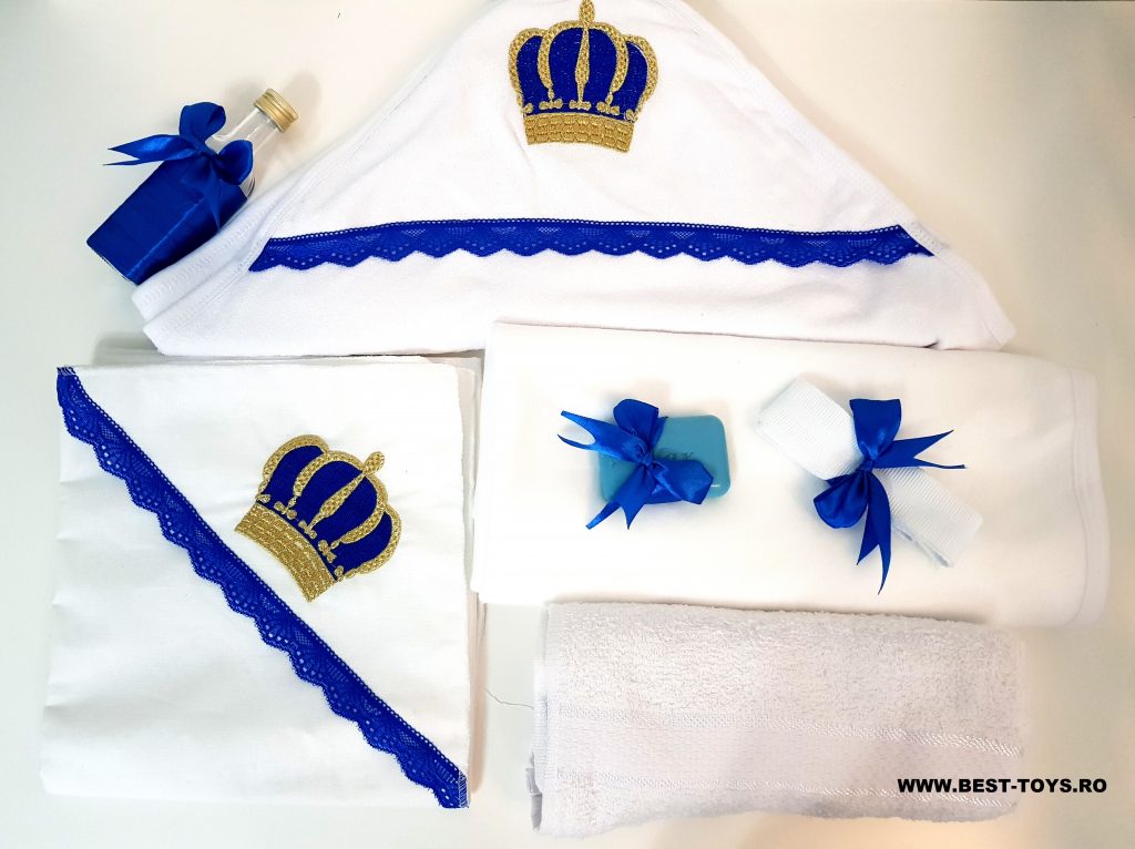 Tags: trusou botez pentru baieti, trusou de botez albastru, trusou de botez cu coroana, trusou de botez cu coronita, trusou de botez micul print