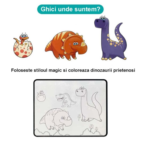 La contactul cu apa si pe masura ce colorati, imaginile ascunse vor aparea pentru a fi descoperite de cei mici.
