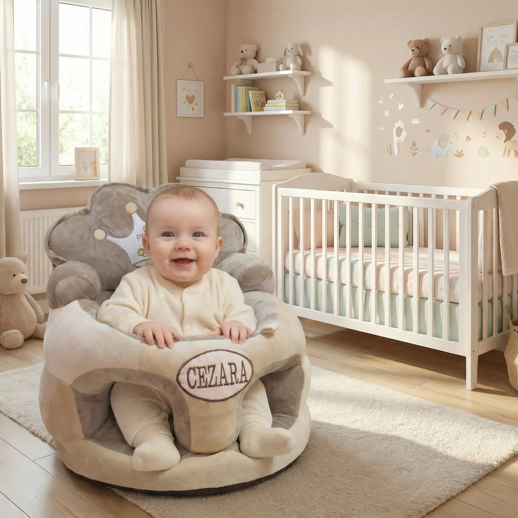 Fotoliu bebe personalizat din plus Printesa Bej Spoil You + Cadou