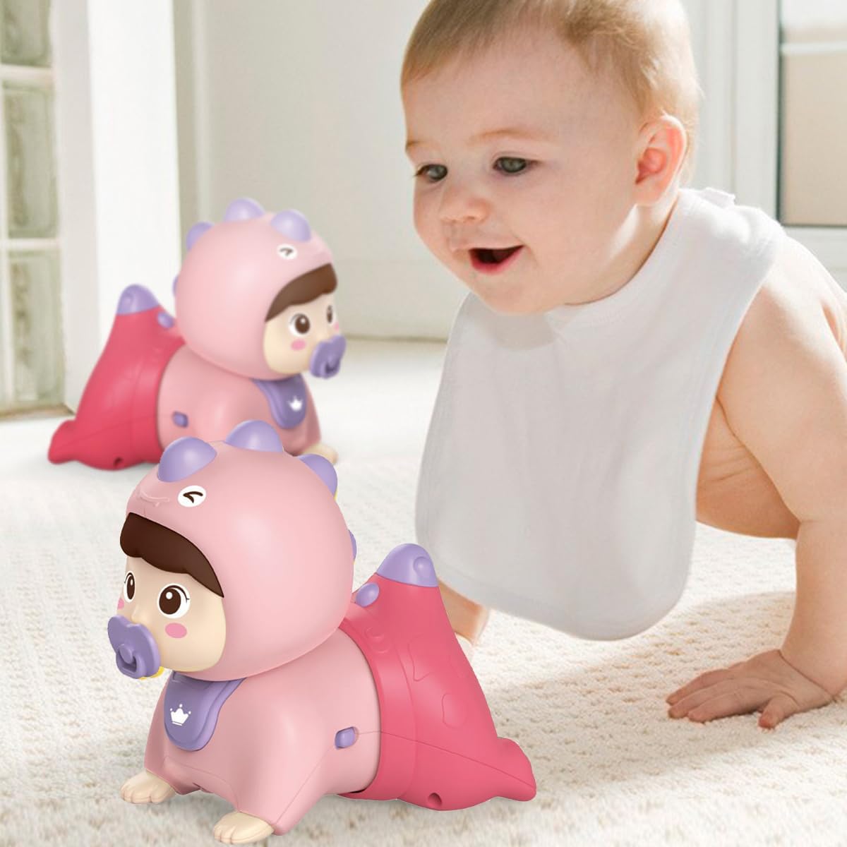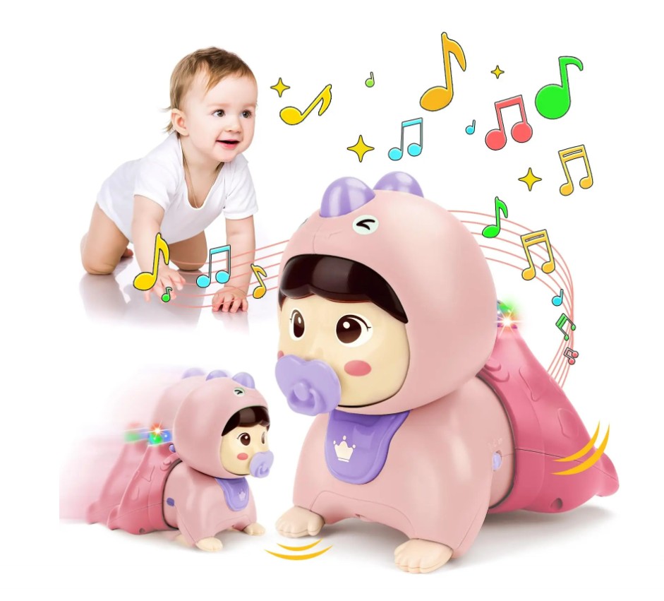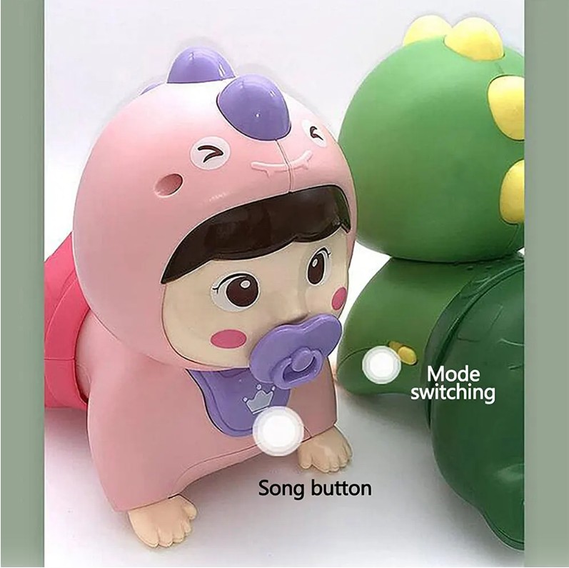 Cu un design adorabil de bebeluș costumat în dinozaur, această jucărie devine rapid cel mai bun prieten al copilului în etapa explorării.