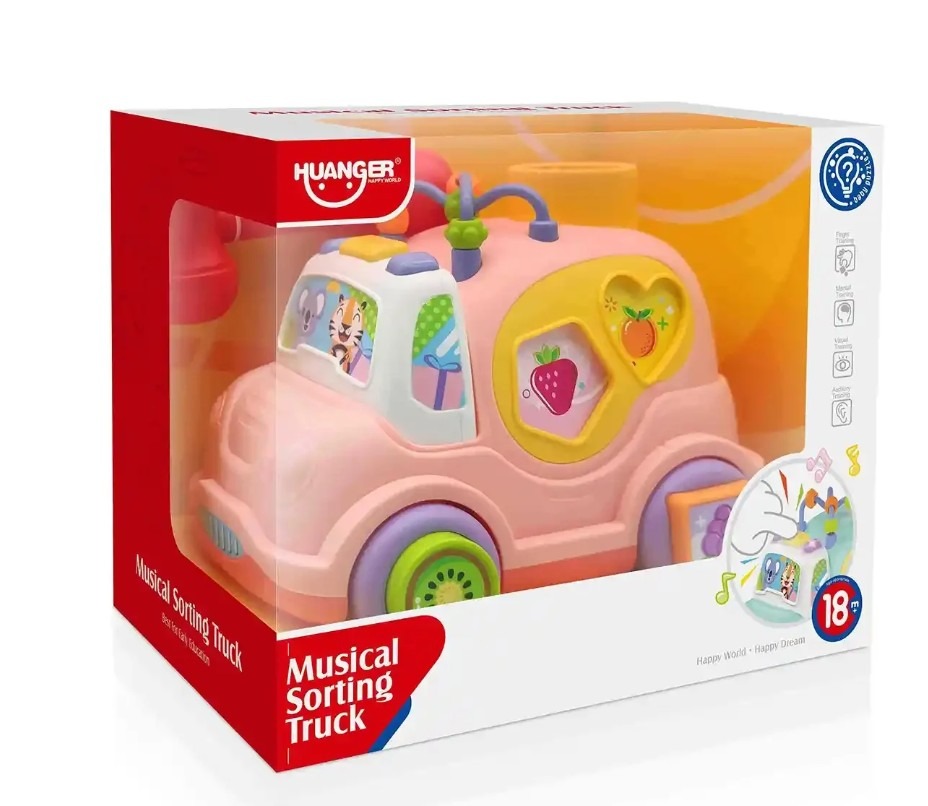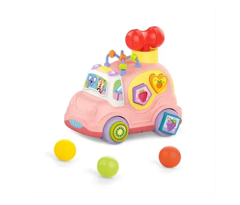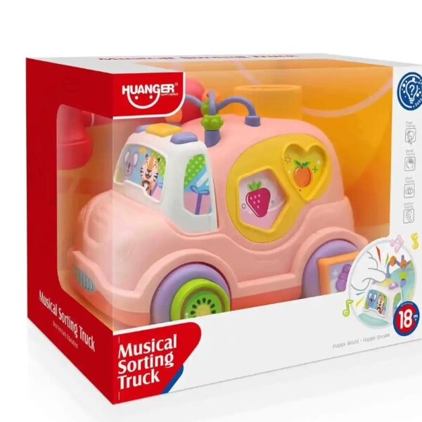 Masinuta interactiva cu sortator de forme si sunete Huanger Roz