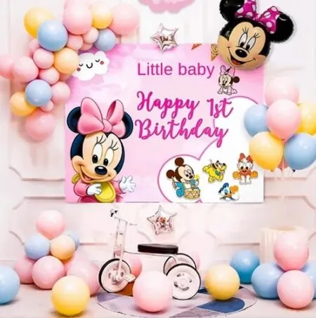 Set aranjament baloane Minnie Mouse Roz 1st Birthday