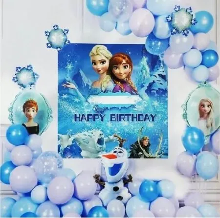 Micutele fane ale filmului Frozen se pot bucura de o petrecere tematica reusita cu ajutorul minunatului set de baloane ce pot fi aranjate asa cum isi doreste fiecare.