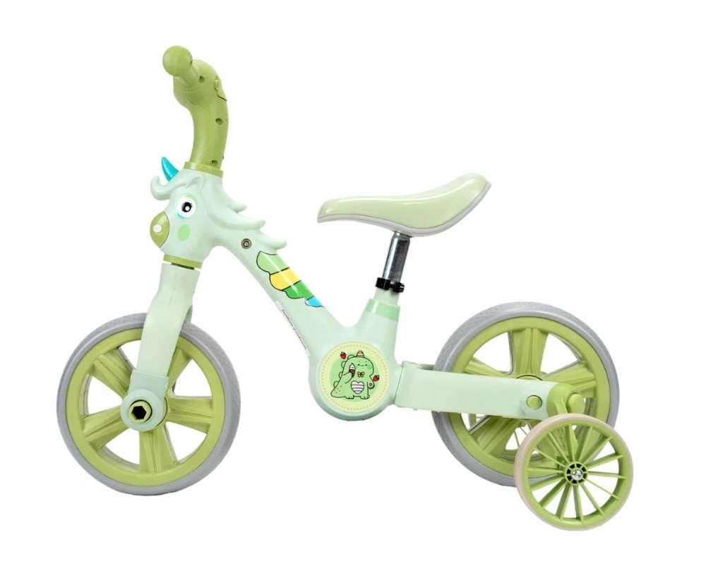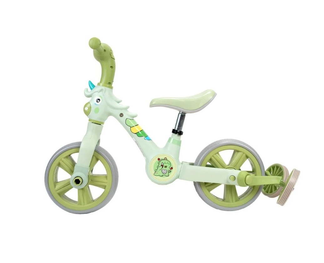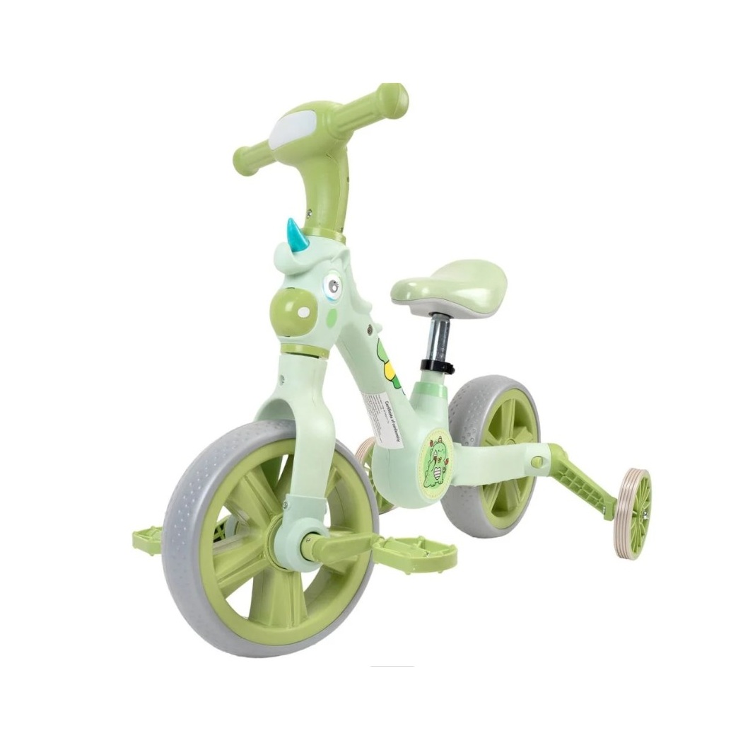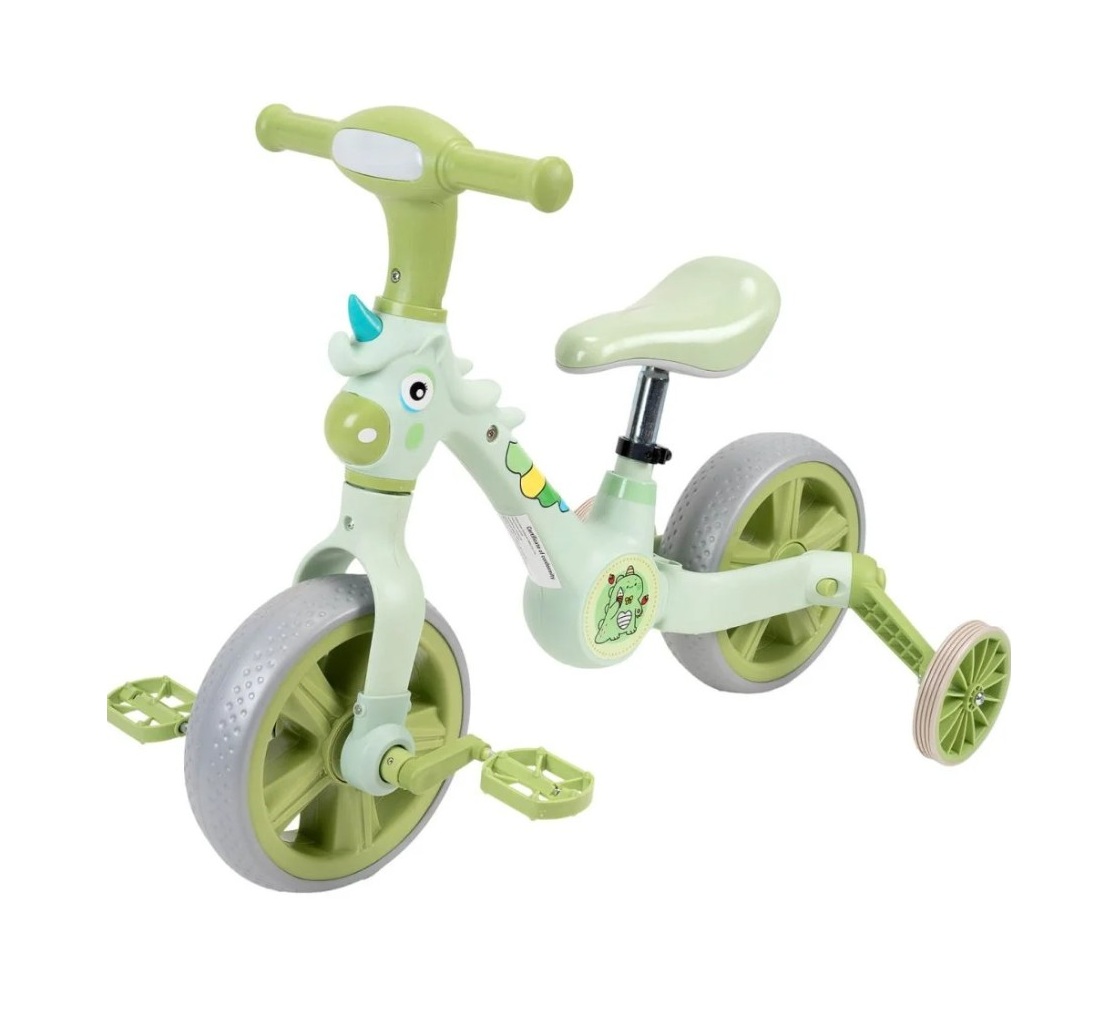 Bicicleta 3 in 1 cu roti ajutatoare si pedale detasabile Unicorn Verde