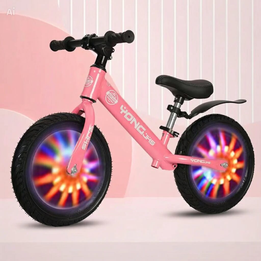 Transformă fiecare plimbare într-o aventură magică și sigură! Această bicicletă de echilibru modernă este partenerul ideal pentru primii pași ai micuțului tău în lumea ciclismului. Concepută special pentru a dezvolta coordonarea și balansul, bicicleta impresionează prin designul său vibrant și roțile cu lumini LED spectaculoase.