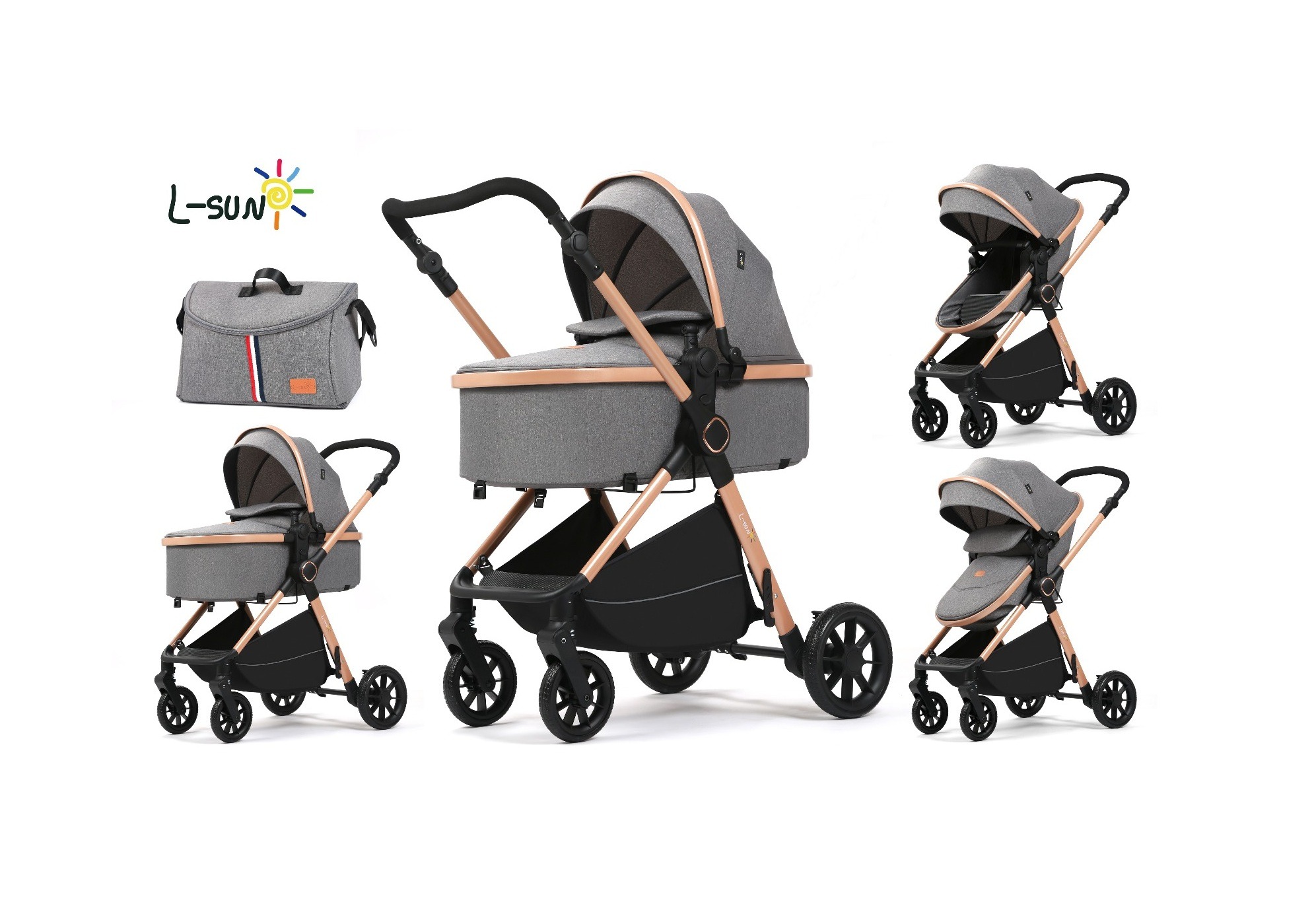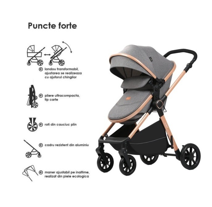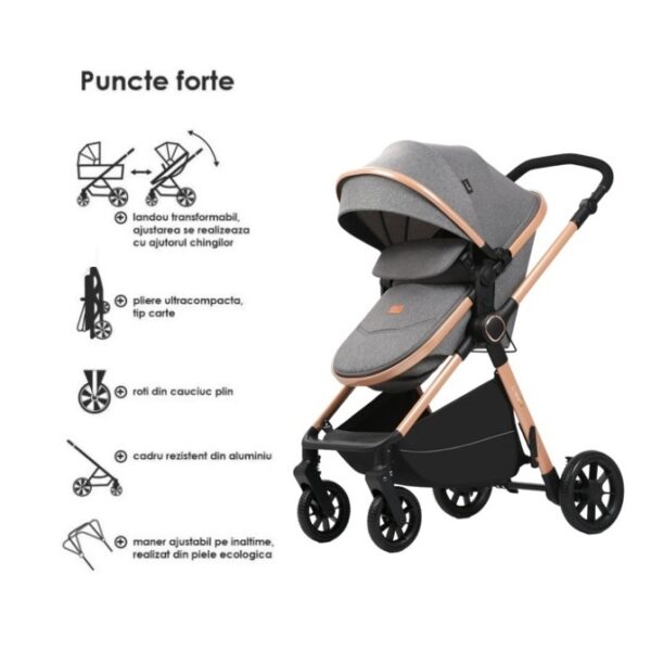 Carucior 2 in 1 cu suspensii si maner reversibil F7 Gri