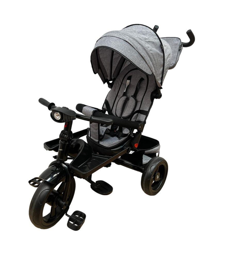 Accesoriul perfect pentru orice copil, Tricicleta cu scaun reversibil, muzica si lumini SL02 Gri, ofera posibilitatea unor plimbari reusite pe parcursul mai multor etape de dezoltare a copilasului.