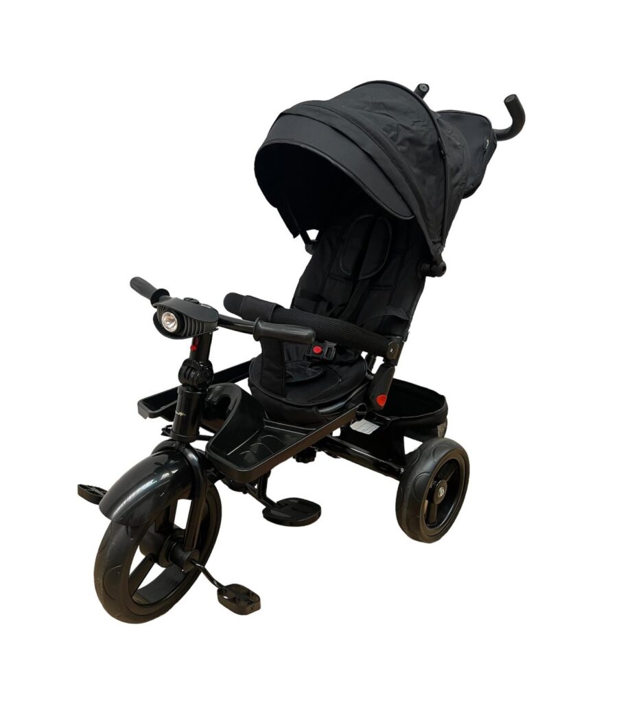 Accesoriul perfect pentru orice copil, Tricicleta cu scaun reversibil, muzica si lumini SL02 Negru, ofera posibilitatea unor plimbari reusite pe parcursul mai multor etape de dezoltare a copilasului.