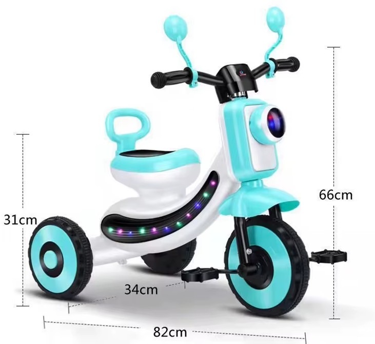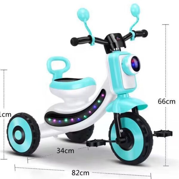 Tricicleta cu sunete și lumini este o tricicletă robustă și sigură, echipată cu funcții speciale care o fac mai atractivă și distractivă pentru copii: