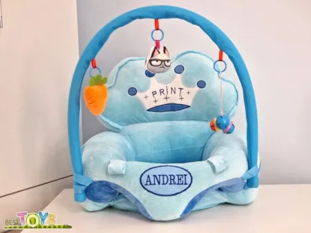 Fotoliul este prevazut cu o arcada si 3 jucarii atasate de aceasta.