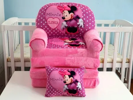 Fotoliu extensibil copii 4 placi si pernuta Minnie Roz personalizat si pernuta + Cadou