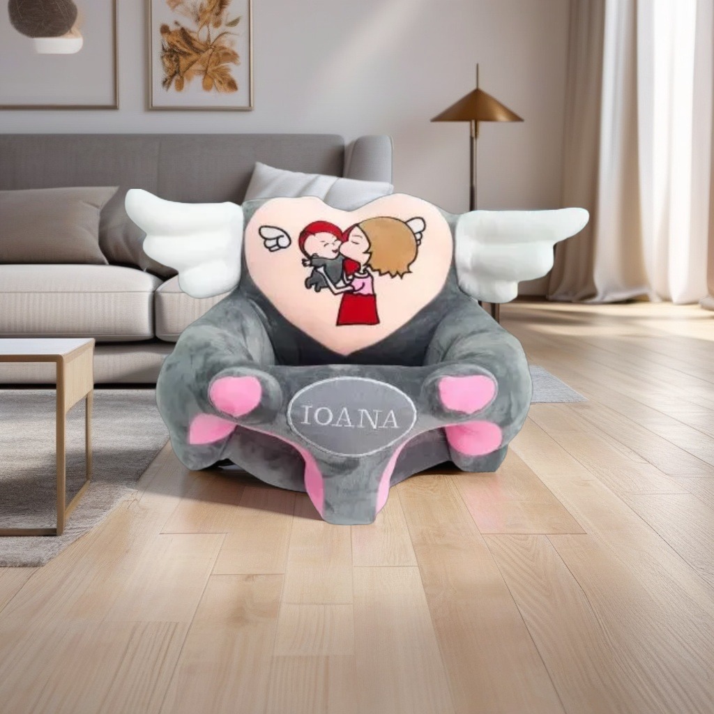 Fotoliu pentru bebelusi Inger Gri Personalizat + Cadou
