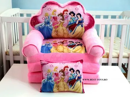 Set fotoliu extensibil copii 3 placi Printese si pernuta + Cadou