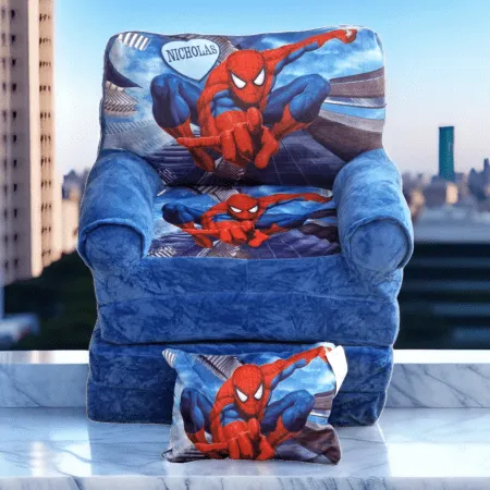 Set Fotoliu Extensibil Copii 4 Placi Spiderman Si Pernuta Personalizat + Cadou
