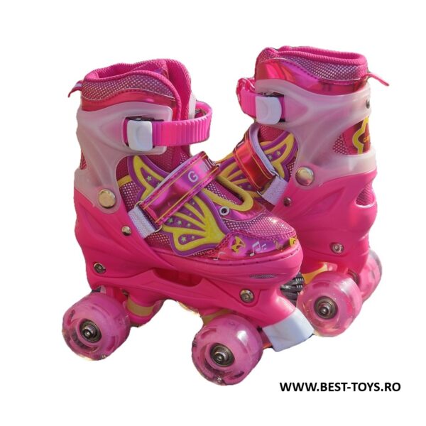 Role pentru incepatori cu 4 roti si leduri Aripi Roz