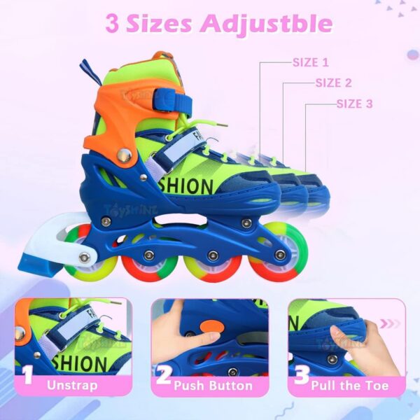 ✅ Mărime reglabilă – Sistem practic ce permite ajustarea rolelor intre masurile 30-34 si 35-38, ideal pentru a le folosi mai multe sezoane la rând.