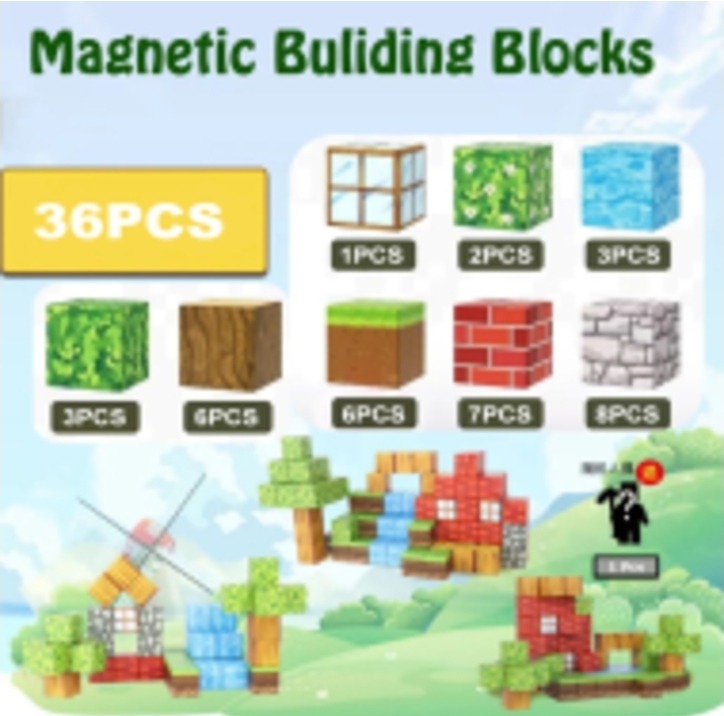 Set cuburi magnetice tip Minecraft Build World 36 piese