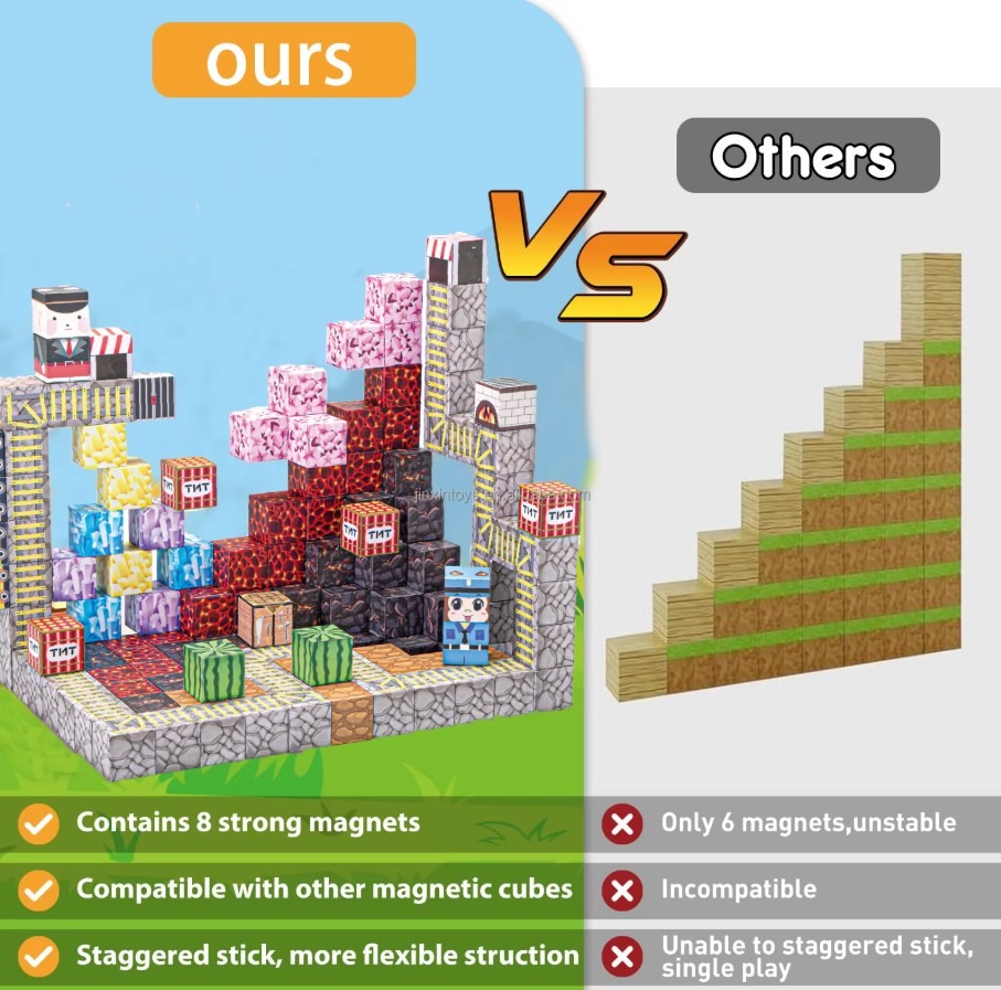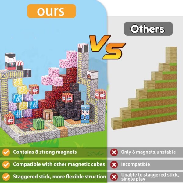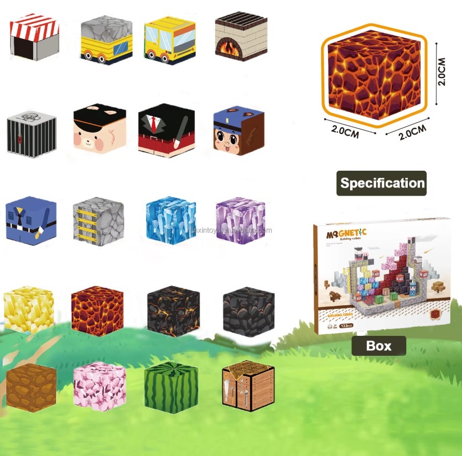 Transformă joaca într-o adevărată aventură creativă! Acest set de 133 de cuburi magnetice este inspirat din universul Minecraft și oferă copiilor posibilitatea să construiască structuri spectaculoase, pline de imaginație.
