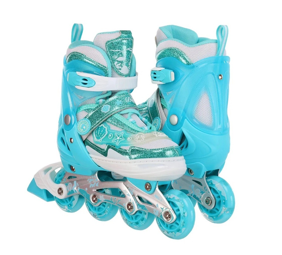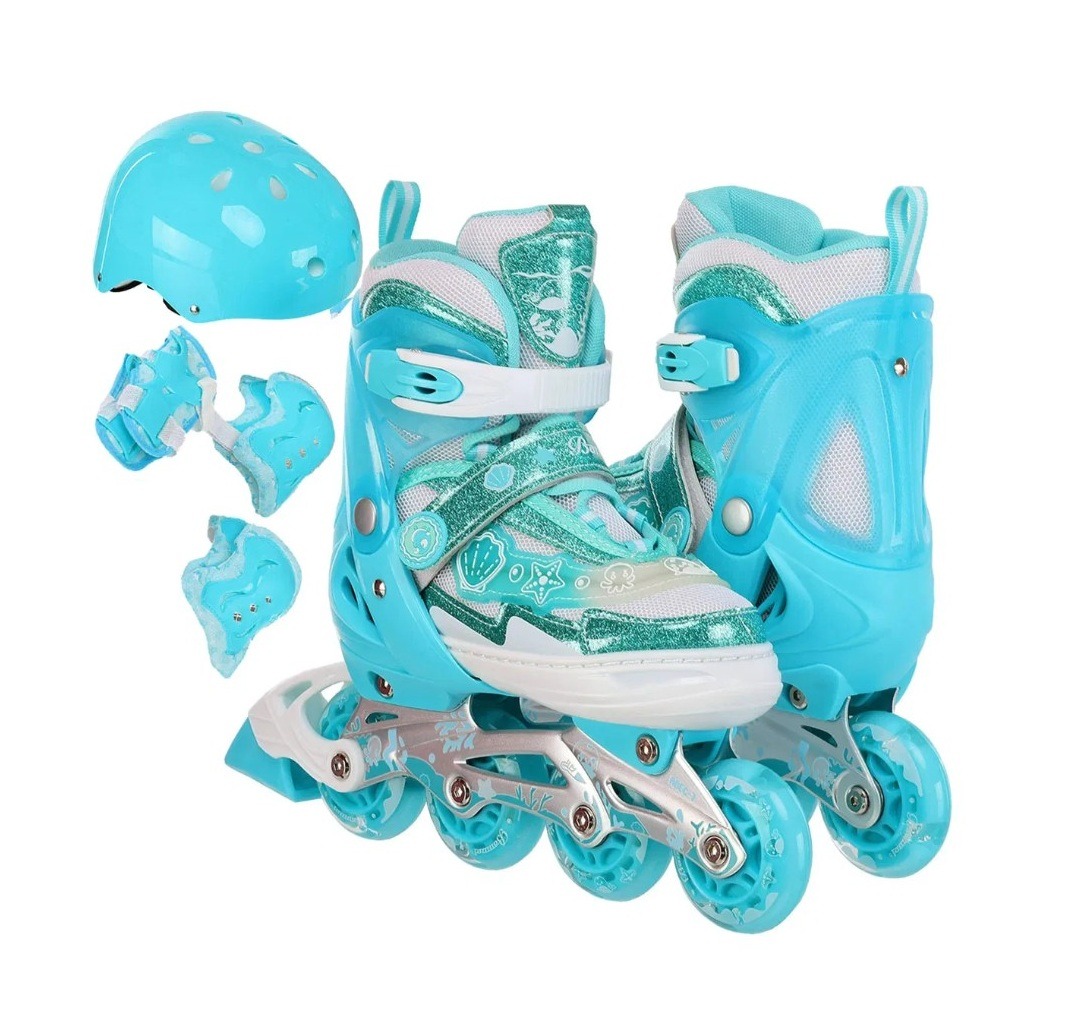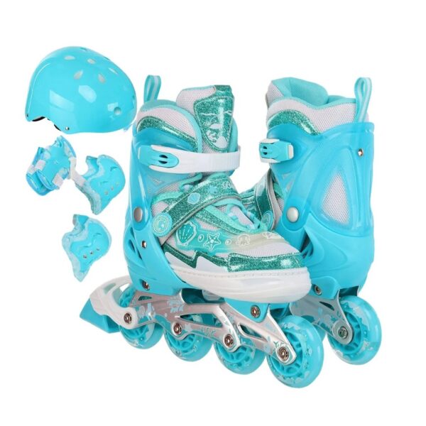 Set role reglabile albastre cu leduri pe gheata si echipament de protectie masura 27-30