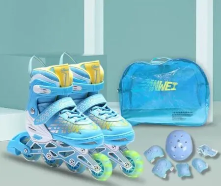 Rolele vin echipate cu cotiere, genunchiere si casca pentru ca cei mici sa fie in siguranta.