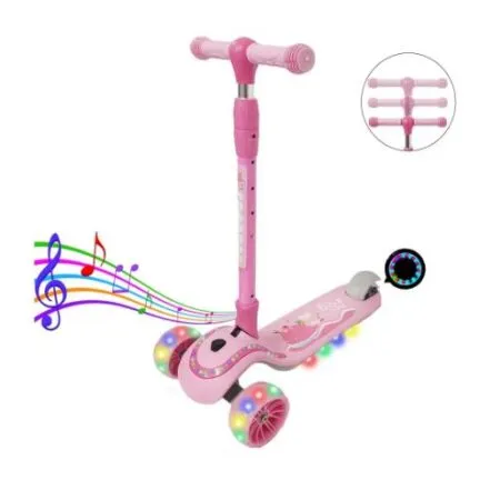 Trotineta cu 3 roti late, lumini si muzica Roz