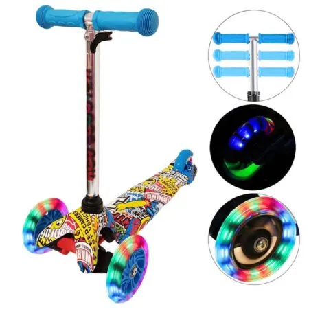 Trotineta Cu 3 Roti Luminoase Graffiti Albastra