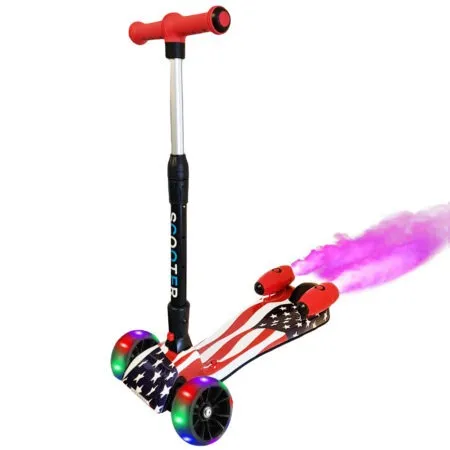 Trotineta cu 3 roti si lumini Racheta este prevazuta cu 2 pulverizatoare cu aburi si lumina.