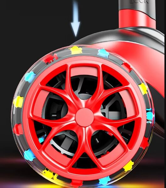 Roțile sunt echipate cu LED-uri care se aprind automat în timpul deplasării, fără baterii, oferind un efect vizual atractiv și o vizibilitate sporită în condiții de lumină scăzută.