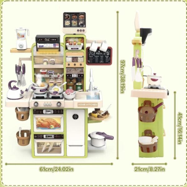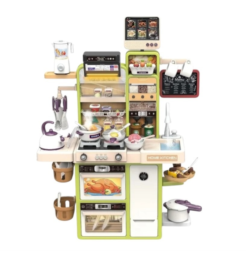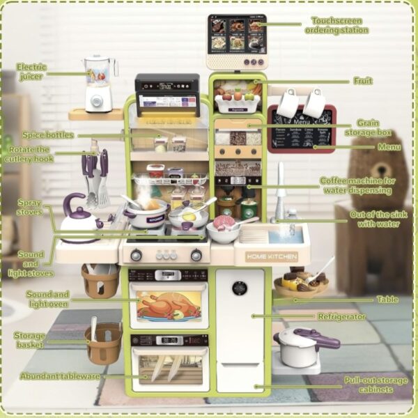 - Experiență Realistă: Bucătăria este dotată cu aragaz cu efecte sonore și luminoase, un cuptor spațios și o chiuvetă funcțională cu circuit de apă.