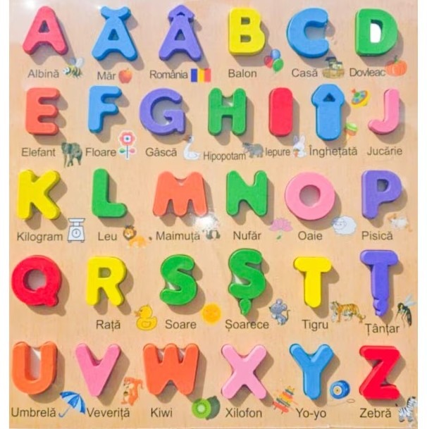 Puzzle tip incastru este ideal pentru invatarea literelor.