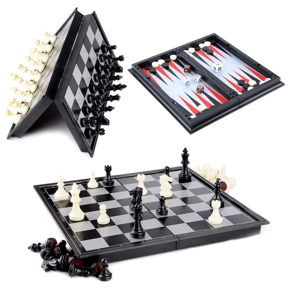 Jocul de societate 3 in 1 de sah, table si dame magnetic, o idee pentru un joc rapid si placut in orice moment liber, atat in concediu, de sarbatori, la picnic sau acasa, in compania familiei cat si a prietenilor. Acest set de jocuri este conceput pentru divertisment si va asigura petrecerea timpului intr-un mod relaxant.