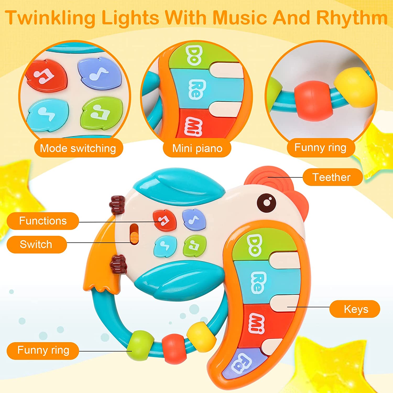 🎶 Sunete și lumini (în funcție de model) pentru stimularea simțurilor