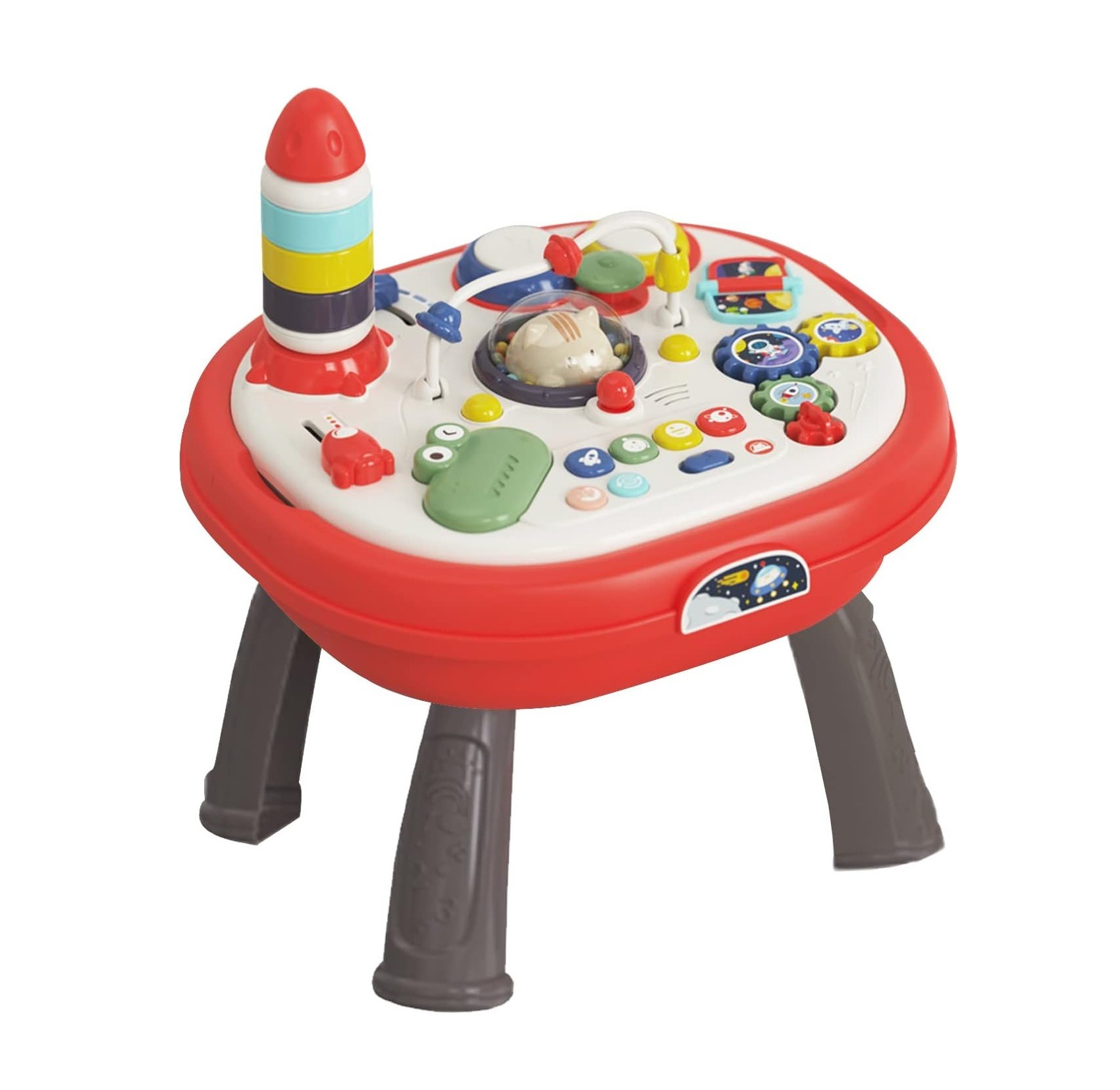 Măsuța interactivă Learning Table este o jucărie educativă multifuncțională, creată pentru a stimula dezvoltarea timpurie a copiilor prin joacă. Designul colorat și activitățile variate captează atenția celor mici și îi ajută să își dezvolte coordonarea mână–ochi, motricitatea fină și curiozitatea.