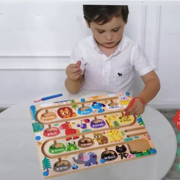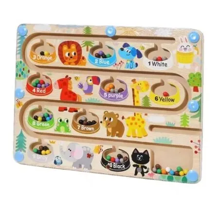 O placa educativa ce dezvolta motricitatea si cu ajutorul careia copiii invata notiuni despre culori si animale.