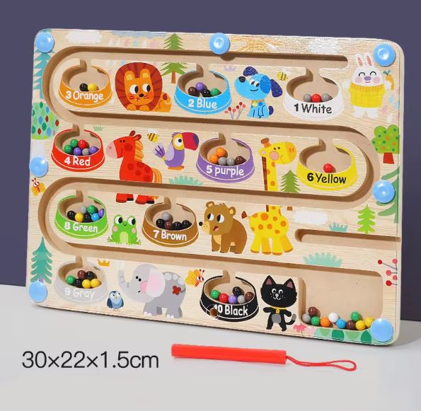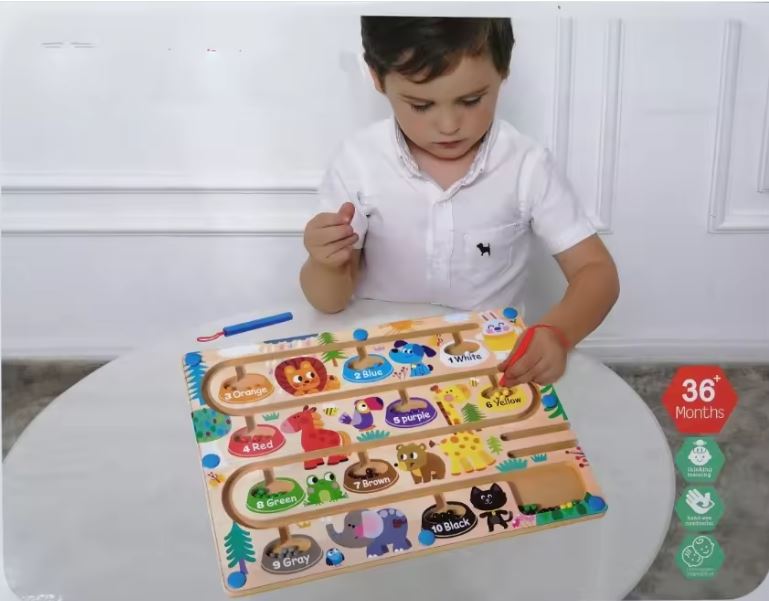 Cu ajutorul pixului magnetic copilasul muta bilutele pe traseu.