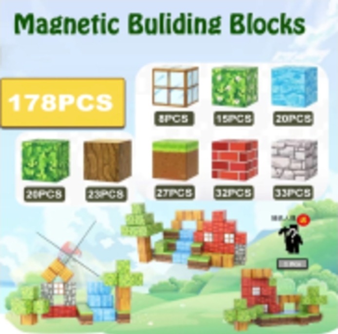 Set cuburi magnetice tip Minecraft Build World 178 piese