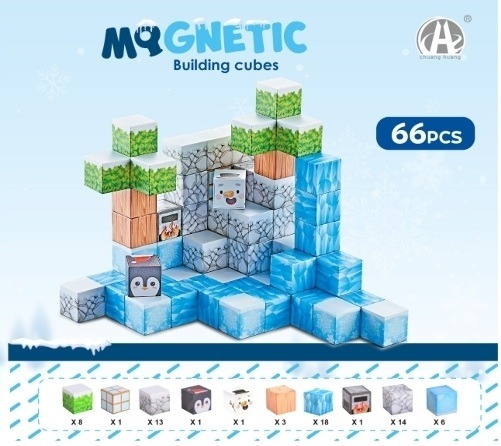 Set cuburi magnetice tip Minecraft Mqgnetic Ice Theme 66 piese