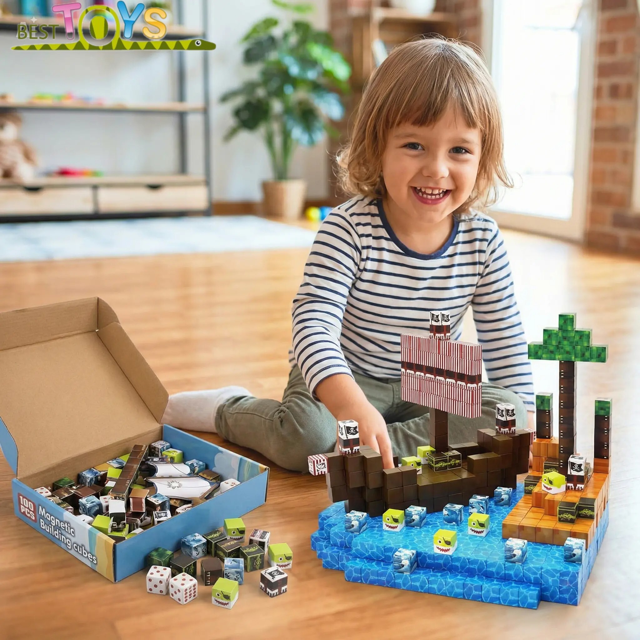 Transformă joaca într-o aventură epică pe mări cu acest set de 100 de cuburi magnetice! Inspirat de universul pixelat preferat al copiilor, setul permite construirea unei corăbii detaliate, a unei insule a comorilor sau a oricărei structuri pe care imaginația o poate crea.