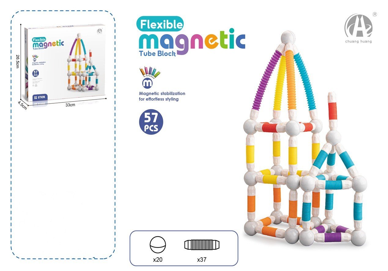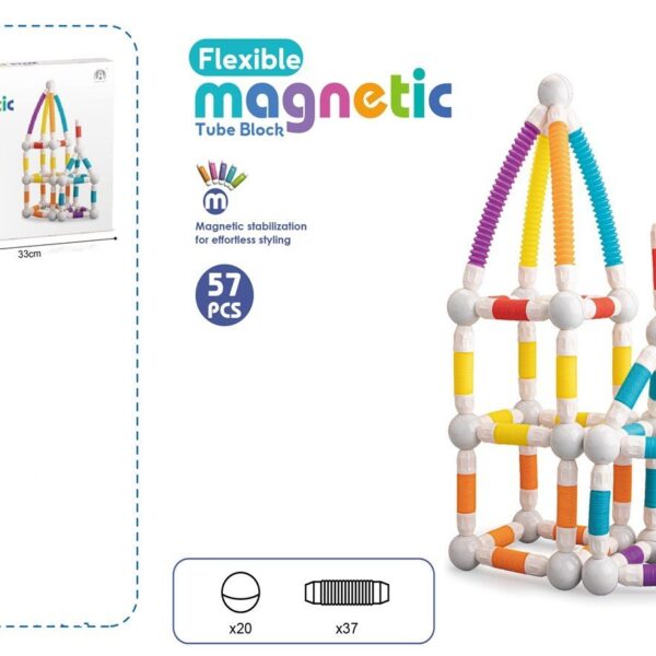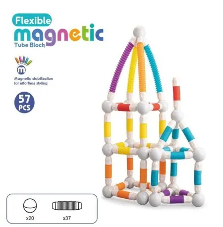 Set STEM magnetic pentru construit cu tuburi flexibile si bile 57 piese