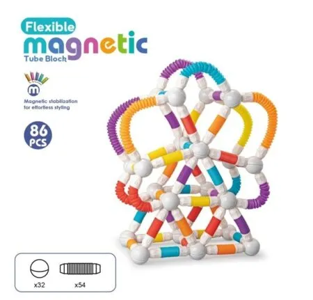 Setul STEM magnetic cu tuburi flexibile și bile este jucăria educativă ideală pentru copiii care adoră să construiască și să experimenteze.