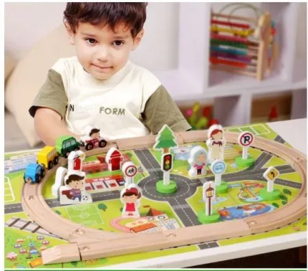 Trenulet din lemn magnetic Urban Traffic Tracks