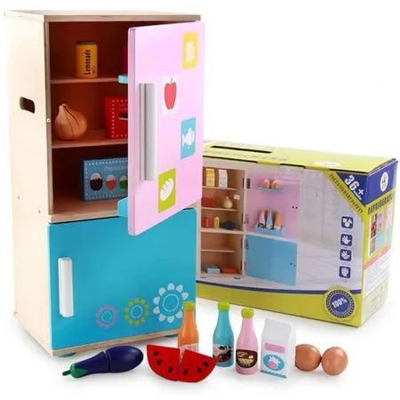Frigider de jucarie din lemn pentru copii + Accesorii