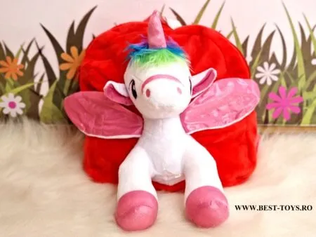Ghiozdan Din Plus Pentru Copii Unicorn Rosu