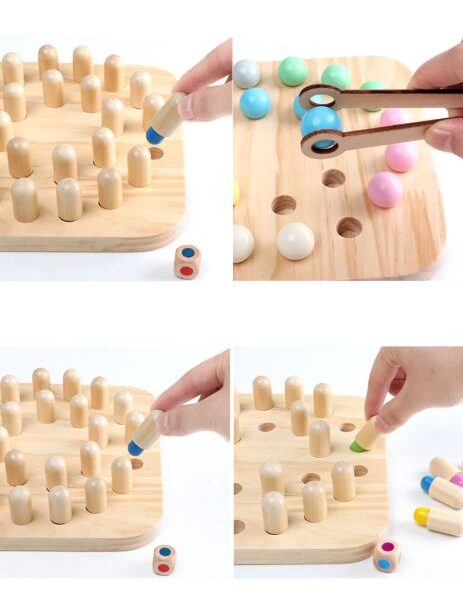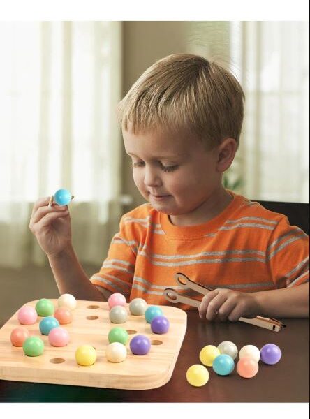 Antreneaza dexteritatea si rabdarea, trebuie sa aranjeze cu penseta bilutele pe tabla de joc.