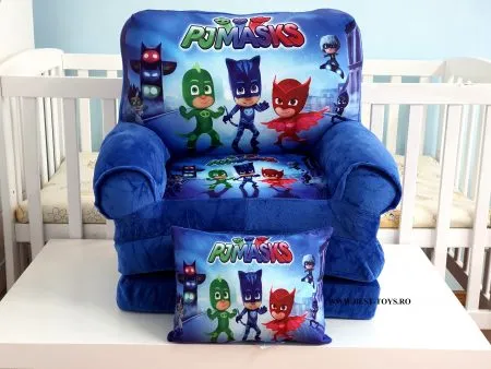 Set fotoliu extensibil pentru copii Eroi in pijama si pernuta + Cadou