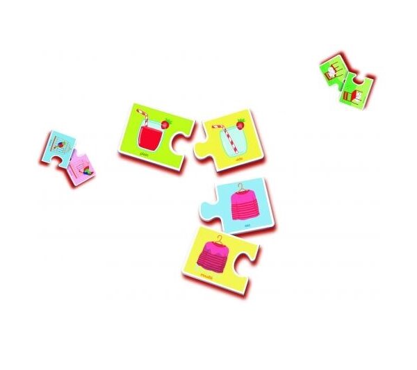 Conține 12 perechi de cărți de puzzle și 1 regulă de joc.