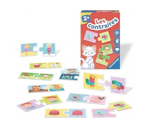 Puzzle din doua piese – Contrariile, un joc ce dezvolta gandirea si coordonarea mana-ochi.